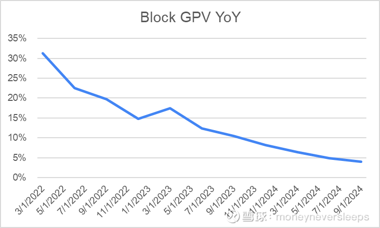 Block三季度GPV62.5billion,收入6billion,直接交易收入1.7billion,交易收入和subscription-based的收入合计3.5billion。净利润0.284billion