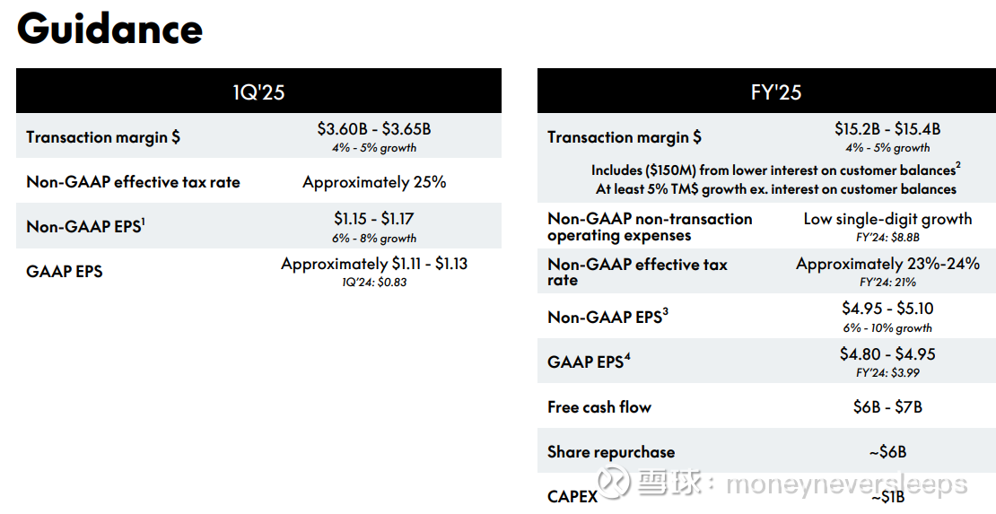 公司给的指引,2025年交易量增速在4-5%,净利润增速更高,Non-GAAP EPS增速在6-10%,按照EPS为5的化,2025年PE不到16倍。在现今美股的环境里一个增速接近10%,还有可能加速的著名公司,这个估值算是很有吸引力了。仍然会观察仓参与。