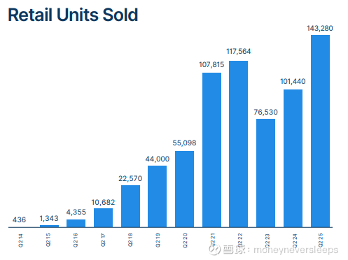 26年美股可能是非常震荡的一年,最近一直在寻找合适的short ideas。Carvana是争议性极大的一家公司,股价表现更是跌宕起伏,2021年八月达到顶点360元左右后,一路下跌到2022年底的不到4元,这跌幅你见过吗?然后就U型逆转,最近又达到新高390元,这一切都发生在五年以内。其基本面的变化“也不过”如图,23年单季度少卖了35%的车“而已”。股价发生如此大幅震荡,公司在2022年底还上演了一出破产和不破产的生死时速,源于其业务的本质是一家二手车消费信贷的公司。经济下行期,零售和消费类公司只会业绩下滑股价下跌大概率不会有生死存亡问题,但是一家消费信贷尤其是次级消费信贷公司如果风控不好,宏观带来的冲击会是致命的。这个角度,Carvana似乎具备了进入另外一场风暴眼的绝佳气质?