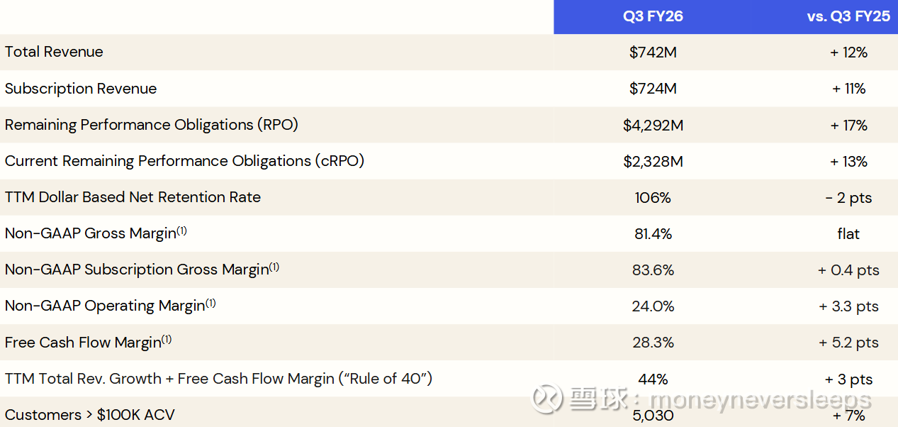 四季度指引,收入增速10%,cRPO增速9%,non-GAAP OPM 25%。