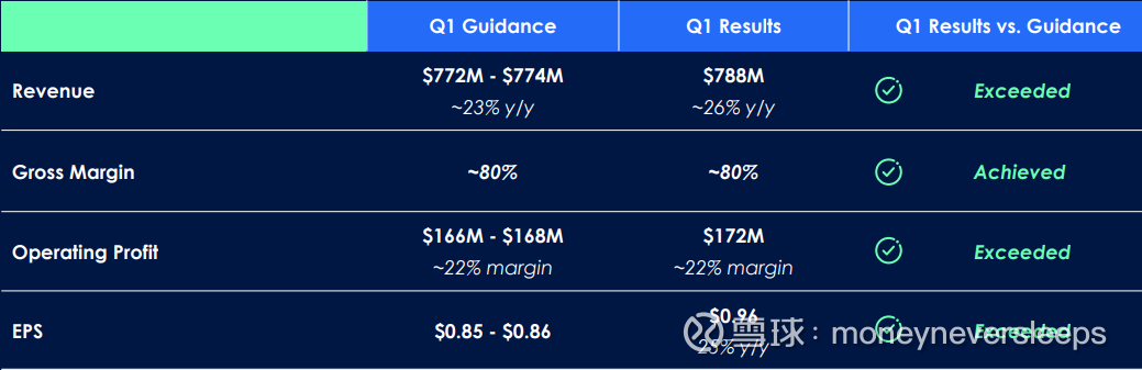 上个季度的指引如下。从完成情况看,三季度实际收入350million(增长48%),超过319-321million指引。其中,subscription revenue 336million,同比增长52%。上个季度的收入309million,增长51%,subscription revenue 297million,同比增长55%。
