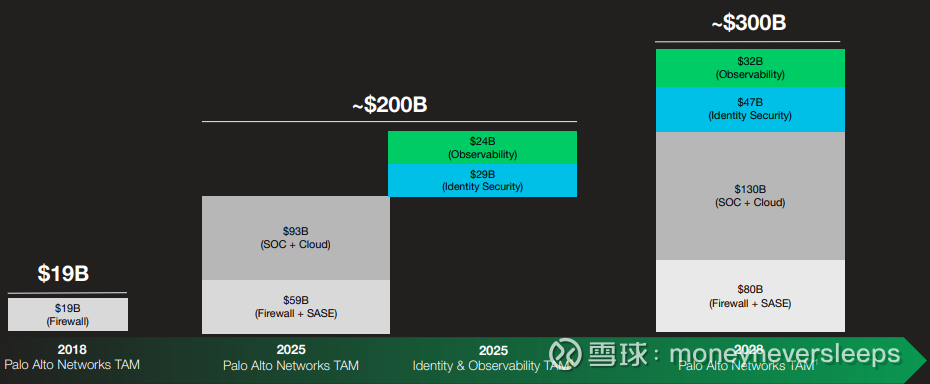 Chronosphere是cloud observability platform。CyberArk做Identity Security。通过这些收购,公司目的是继续其平台战略,扩大其TAM。比如observability和identity security在2025年分别是24billion和29billion的市场,加上公司原来业务的TAM,合计TAM达到200billion。而2028年TAM将达到300billion。