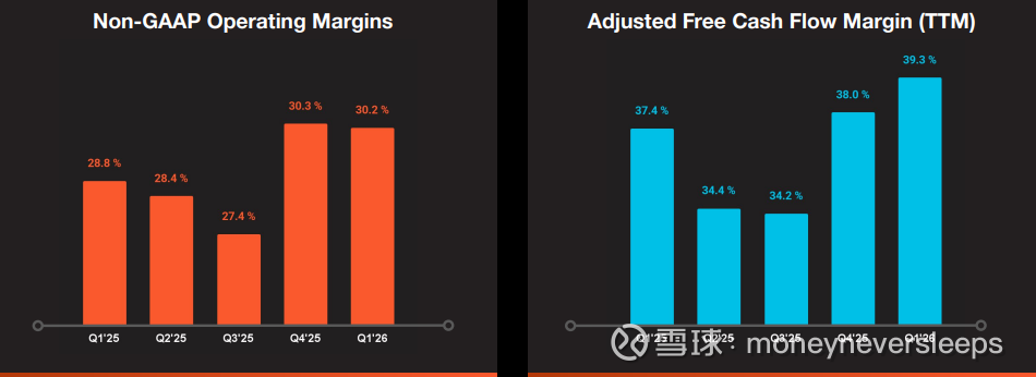 而公司的远期利润指引为Non-GAAP OPM 28-32%,FCF margin为34%-38%