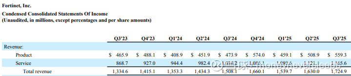 比较Fortinet和Palo Alto N的收入项,Fortinet这个季度的产品收入增速18%,后者为22%;service收入前者为12.7%,后者为14.3%。总收入Fortinet增速为14.4%,Palo Alto N为15.7%。但是Fortinet大部分是organic增长,收购非常小,商誉和无形也非常少。