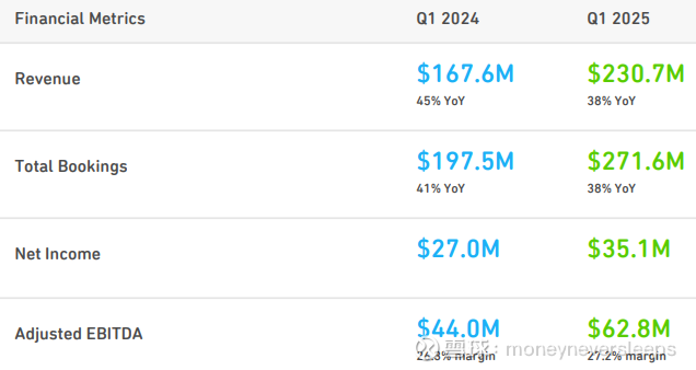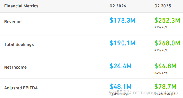 而收入增速的数字是滞后的,更反应公司即时成长趋势的是Bookings的数字,Q1增速为38%,Q2提升到41%(就是当天跳涨超过30%后迅速缩小涨幅并随后进入跌幅的季报),Q3继续比较大幅度降低为33%。