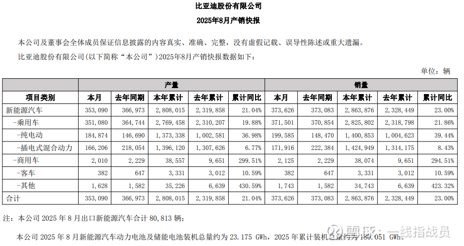8月份比亚迪的装机量,有所恢复,产量低于销量2万多,过去的这个8月份,比亚迪依然在积极去库存。