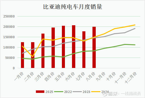 比亚迪纯电车的销量,比上个月增长了2万多辆,新款元up贡献不小。