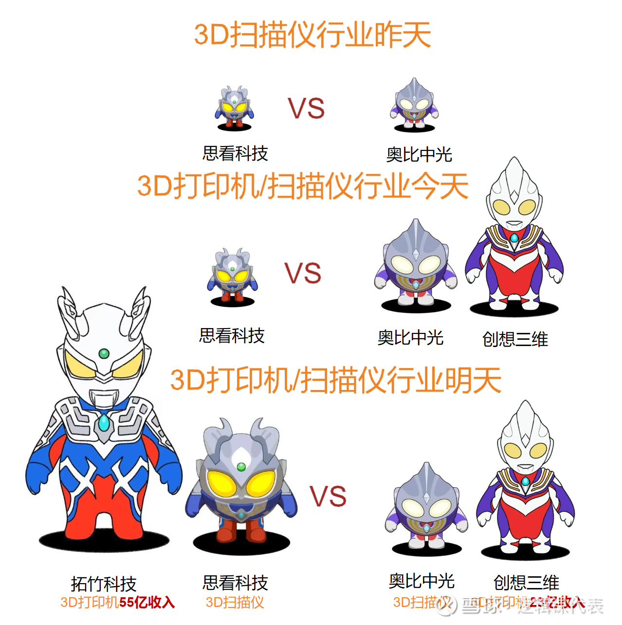 我看看一个数据,2023年拓竹科技收入27亿元,创想三维收入19亿元,拓竹收入是创想1.4倍,2024年拓竹科技收入55亿元,创想三维收入23意义,拓竹收入是创想2.4倍,拓竹体量快速与创想拉开差距。