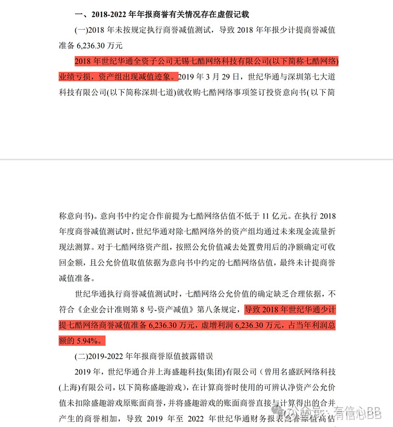 2018年,因为华通溢价收购的七酷网络亏损了,所以收购的溢价部分的商誉也应该减值,应该减6000万,但华通偷着没减,这样当年就虚增了6000万的利润。