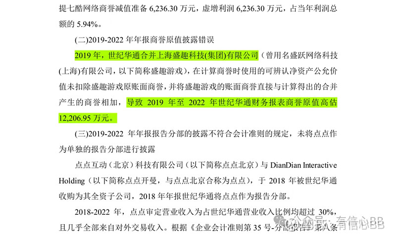 2019-2022年,华通收购盛趣游戏之后,乱算商誉值,导致这几年商誉被高估了1.2亿。
