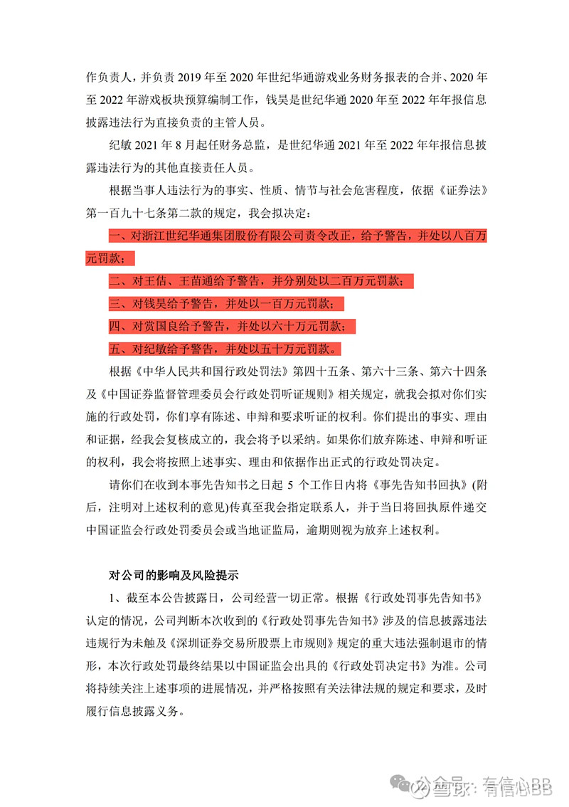 世纪华通通过买买买成功转型游戏行业,但他一路高歌的同时也因为买买买落下了一些隐患。而且这隐患在2024年爆发了出来,以证监会对他行政处罚的形式爆了出来。