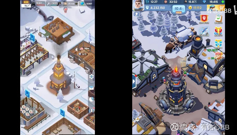 这个左边的是冰封时代的人物画面,右边是无尽冬日的人物画面。可以直观看到,冰封时代的画面不如无尽冬日的画面细腻圆润,就意味着冰封时代在画面技术上的投入就可以比较少,但不妨碍点点互动通过这种低投入来试验玩法模型。冰封时代上线半年,就实现了全球收入超过2亿,一个试验游戏大获成功,点点互动在此基础上继承了游戏题材,调整并丰富了一下玩法,再投入更多资源把画面做得更精美,集中火力推出了无尽冬日。