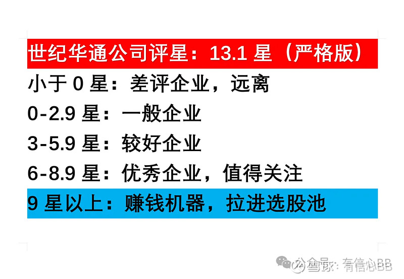 我这里再给出另一个他的公司评星,就是要减去5星的信誉星数,给13.1星。这两种不同答案大家可以自行判断哪个更合理一点,严格点选少的,宽容点选多的。即使严格,他也是一家非常优秀的公司,不愧为A股游戏上市龙头。