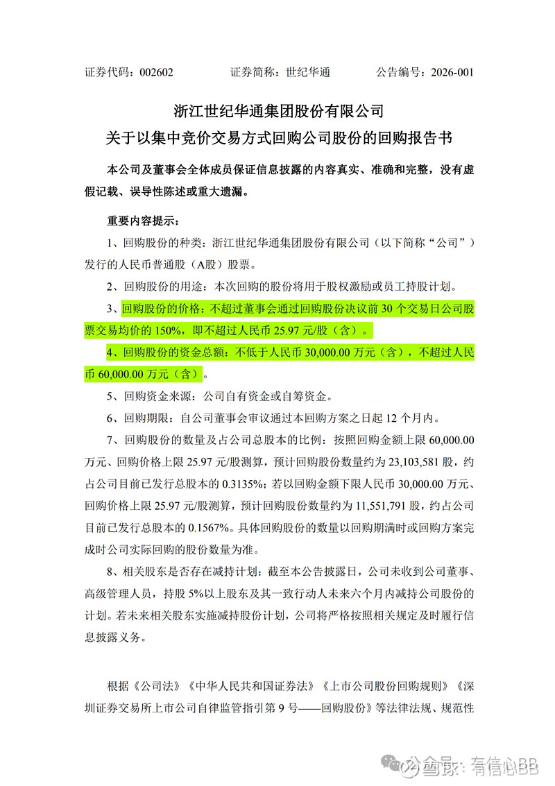 紧接着又在今年1月6号,华通又发布了新的回购报告书,预计不超过25.97元每股的价格,回购3-6亿。而且之后陆陆续续也开始回购了。