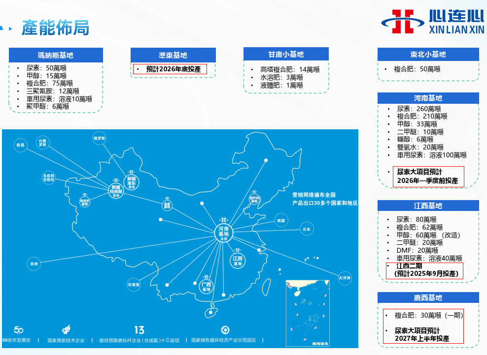 按照管理层业绩规划指引,2027年底心连心实现800万吨尿素,600万吨复合肥,44万吨三聚氰胺以及若干其他化工品产能,并假定2028年及以后基本不再大规模投资扩产。