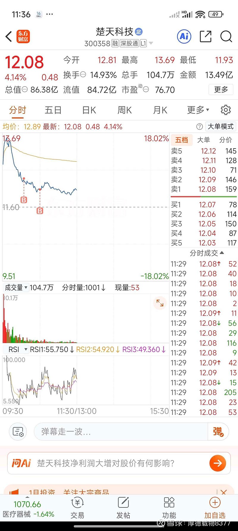 $楚天科技(SZ300358)$