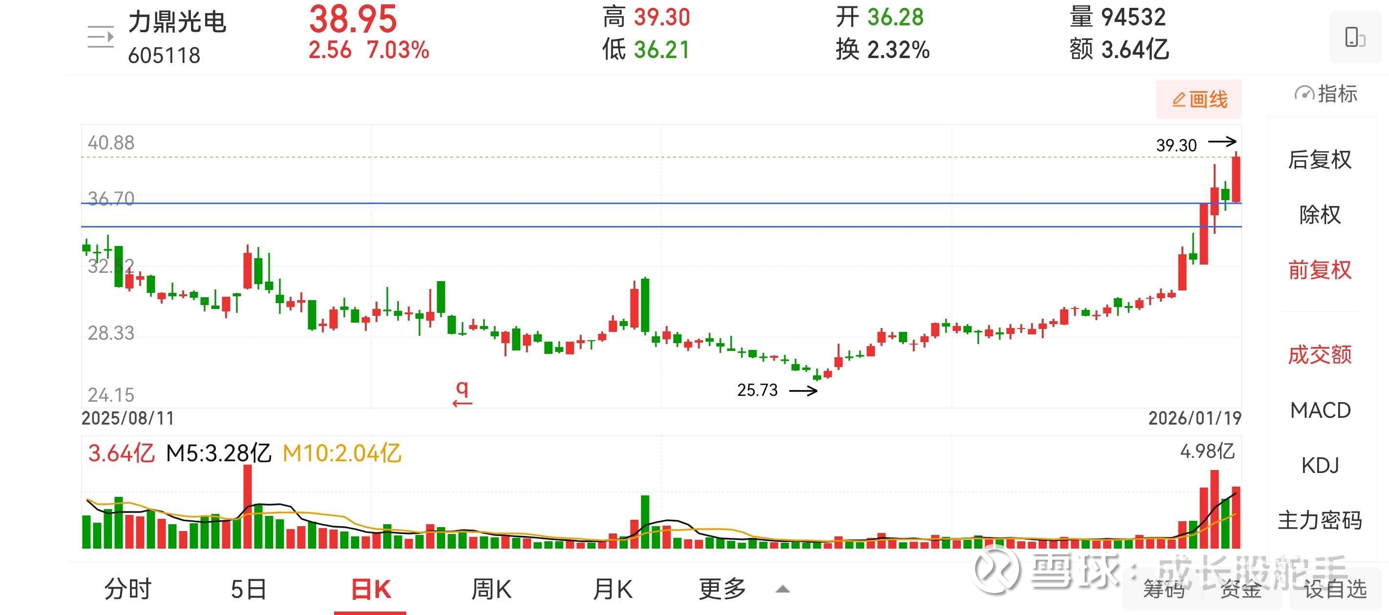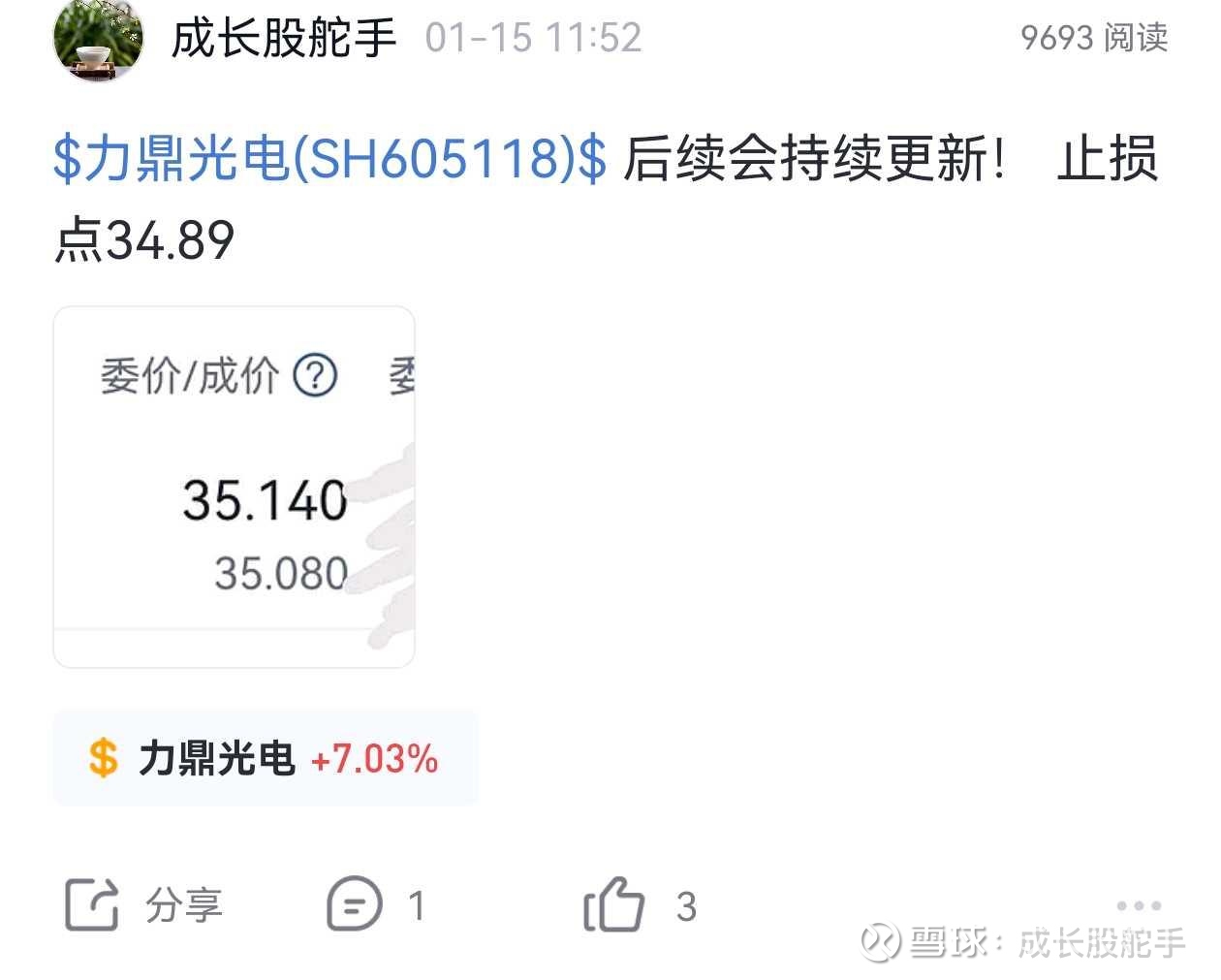 $力鼎光电(SH605118)$ 1月15号买入,目前是持仓的第3个交易日,盈利11.03%