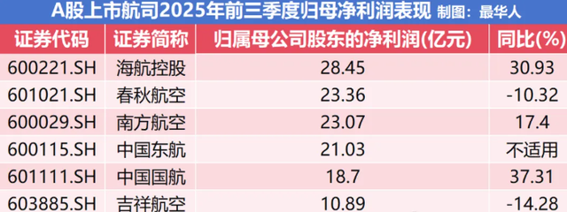 最终,海航从2020年亏损687亿元的“亏损大户”,到2025年前三季度28.45亿元的净利润,超越春秋航空23.36亿元的净利润,成为上市航司中的新晋“盈利王”。