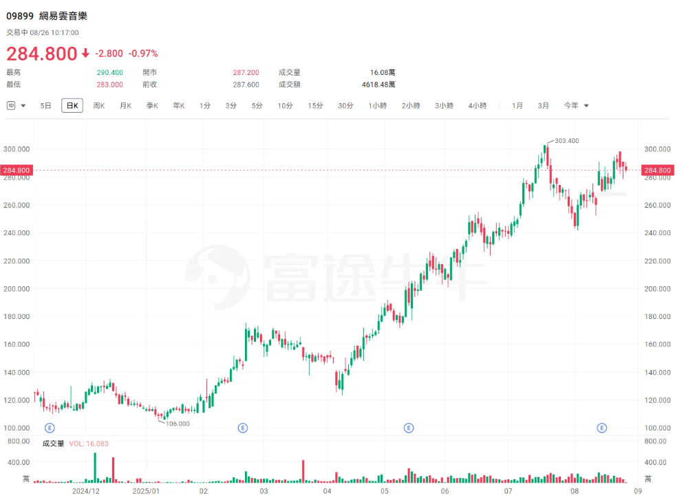 网易云音乐 (09899.HK) :6月以来累计涨超35%。8月下旬,招商证券国际发布研报称,鉴于社交娱乐业务预期走弱,将网易云音乐(09899)2025、2026财年的营收预测下调4%至5%,但受益于成本管控带来的利润率改善,核心营业利润预测分别上调25%、23%。基于分类加总估值法(SOTP),目标价从208港元大幅上调至330港元。其中,音乐业务给予未来12个月30倍市盈率,社交娱乐业务采用10倍市盈率,整体分别对应2025、2026财年21倍、26倍预期市盈率,评级增持。