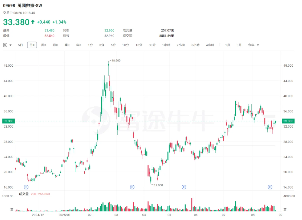 $万国数据-SW(09698)$ :万国数据发布业绩,于2025年上半年,实现净收入约56.23亿元,同比增长12.2%;毛利约13.34亿元,同比增长22.71%;归属于万国数据控股有限公司普通股股东的净利润为约6.64亿元,同比扭亏为盈。