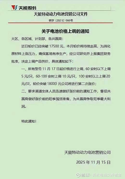 $天能动力(00819)$ 搞不懂,5倍pe的消费股有啥可怕的? 终端电池又涨价了,满大街跑的两轮三轮车以后都是天能的消费对象。最近无意逛小区,发现三轮的接娃神器代步车越来越多了,理论上三轮用的电池应该比两轮还要多吧。再加上这两天期铅大跌225元,不错,利好天能,继续持有。@大湖爱投资 @孤鹰广雁