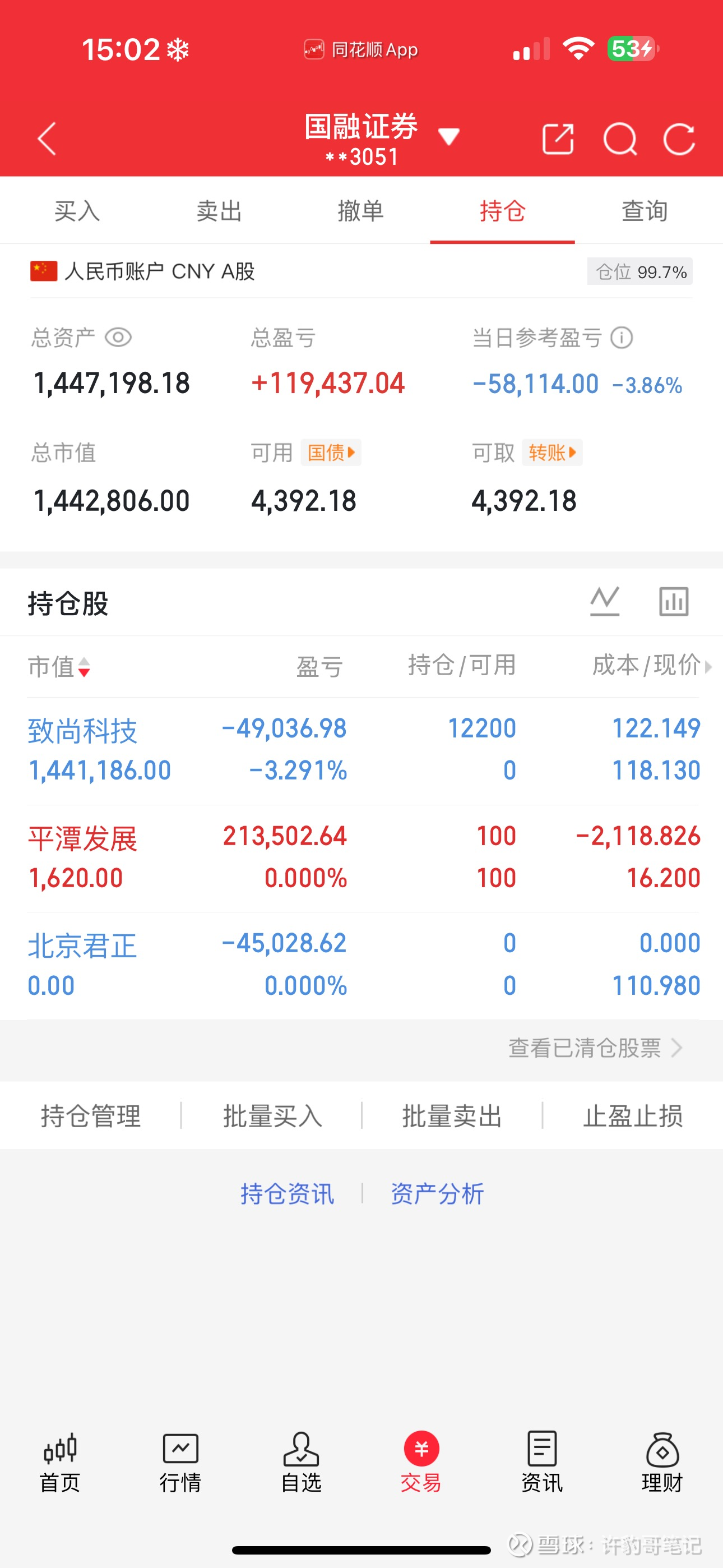 悲伤的这几天。自从周三最开始第一个涨停的最低点出了超捷股份后,后面就不敢追了,也没想到这波商业航天实在是太太太超预期了。结果这几天不在主线商业航天上,去的其他的,还亏。唉。 这波算是错过了。