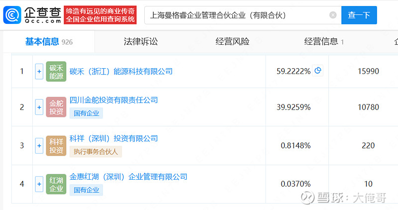 $达刚控股(SZ300103)$ 关注了一下上周二股东的拍卖,三笔合计1.77%的股权都由金祥远舵拍走,金祥远舵的股权结构与大股东曼格睿除了陈可之外的投资人高度一致,也就是说公司未来的发展方向得到了金舵(泸州老窖集团全资的投资平台)的认可,新的实控人和他的合作伙伴正在逐步获得更多的筹码,在那之后到底想做什么应该就能见分晓了