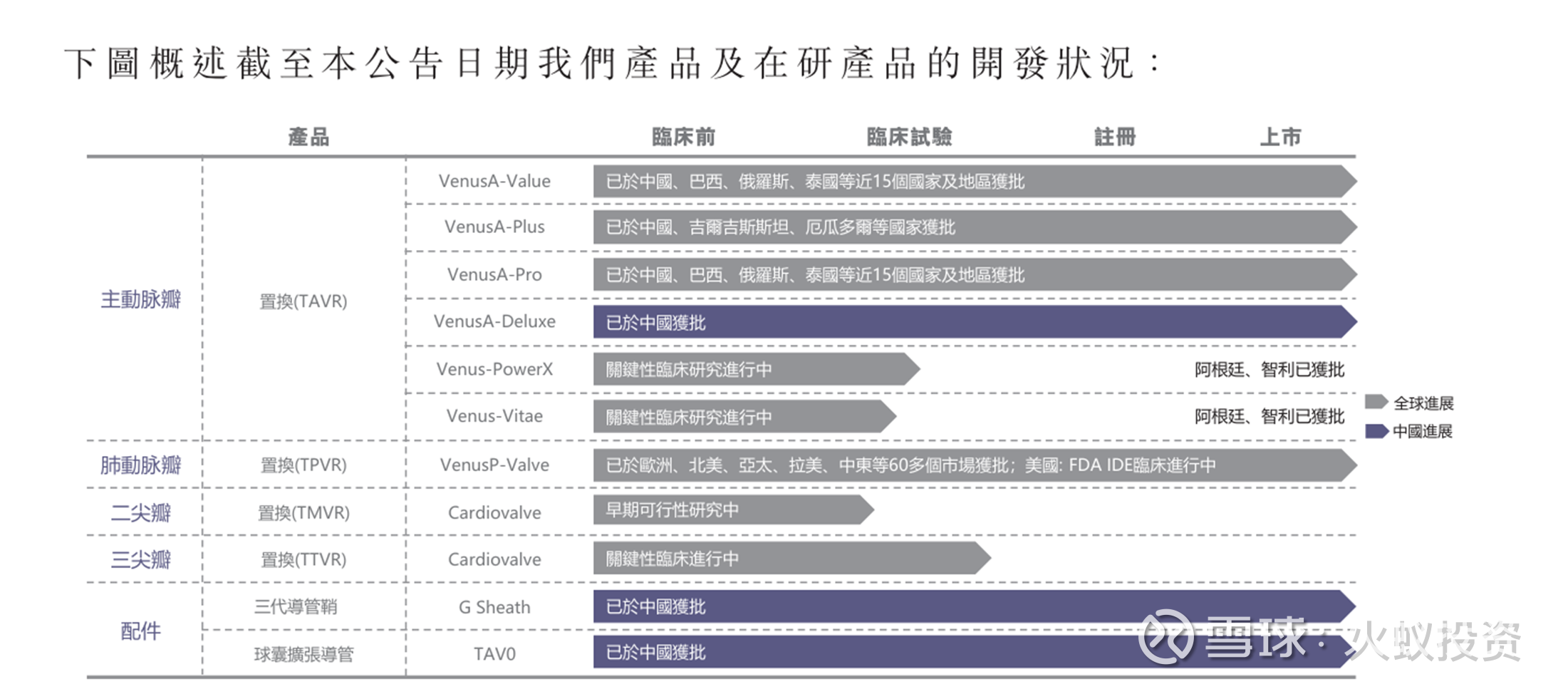4.重磅产品:公司Cardiovalve自主研發的經導管二、三尖瓣置換產品正處在上市前研發階段。目前針對三尖瓣反流適應症產品處於歐洲關鍵性臨床試驗 階段,針對二尖瓣反流適應症產品處於可行性研究階段與同類產品相比,其經股靜脈的入路方式顯著提升了治療安全性,產品最大 55mm的大瓣環設計適用約95%的患者群體,同時,其獨特的短瓣架設計可有 效降低心室流出道梗阻風險。Cardiovalve三尖瓣反流介入治療系統的CE關鍵性臨床試驗正在歐洲(主要於 德國、意大利、西班牙)、英國及加拿大30餘家國際頂尖心血管中心穩步推進。 截至報告期內,已成功入組患者超過130例,該臨床研究全面進入後期核心階 段。二零二五年紐約瓣膜大會(New York Valve 2025)上,公司首次發佈前125例 患者術後即刻數據,結果顯示患者人群屬高齡高危:平均年齡77歲,且絕大 多數(94%)為重度(3+)、極重度(4+)或瀑布樣(5+)三尖瓣反流患者(佔比分別為 24%、34%、67%)。安全性優異:初步數據驗證了Cardiovalve良好的安全性特 徵。有效性顯著:術後即刻高達98%的患者實現了無中度及以上反流(≤2+), 瓣膜反流情況得到顯著改善。公司預期將於二零二五年下半年完成 Cardiovalve歐洲關鍵性臨床試驗患者入組,並將努力加快審批進程。该产品未来有可能有BD预期,毕竟跟爱德华官司胜诉,也同时给公司的技术背书。