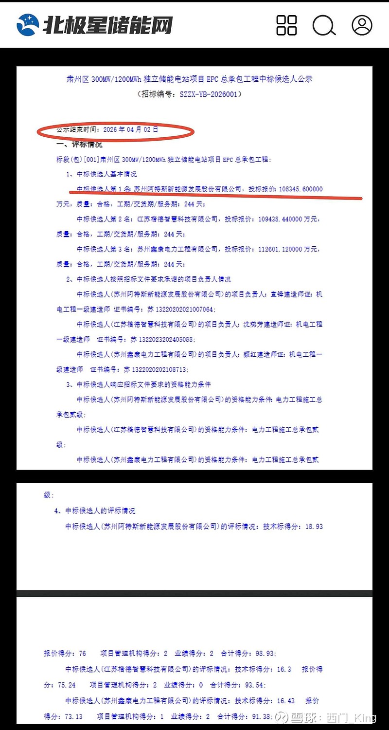 中标10.83亿储能项目,第一候选方,4月2号公示结束,这么大项目,看公司会不会公告