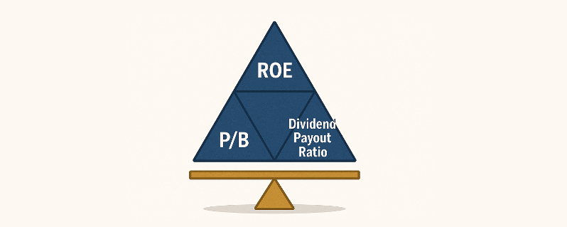 单独来看,ROE、分红率和 P/B 是三个很重要的投资指标。同时,很多其他重要指标例如市盈率(P/E), 股息率,盈利增长率等,也均可以通过ROE、分红率和 P/B的组合表达。