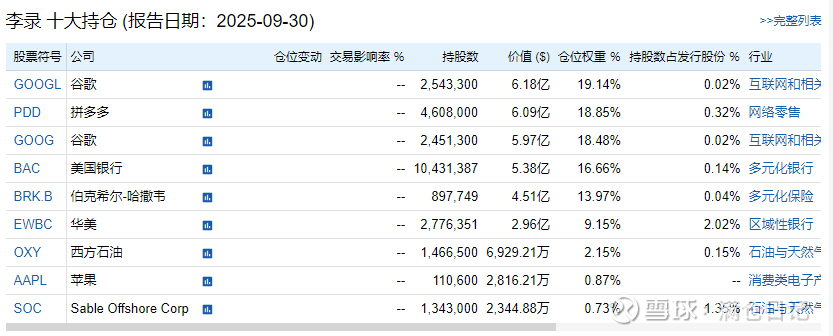 李录的最大持仓是谷歌,仓位占比37%,已经保持这种状态很久了。
