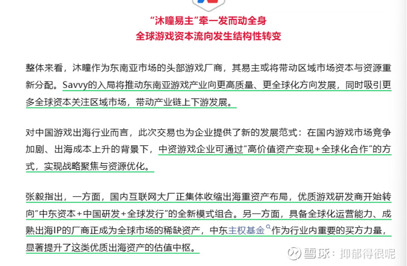 $中手游(00302)$ 字节把沐瞳卖给沙特基金60亿美元成交这事,我看有观点说这次交易是全球游戏资本流向的结构性转变,中东主权资本正在取代欧美巨头成为行业的主要买方力量。那这么说,中东资本持续加仓游戏行业,说明全球资本对游戏资产的估值还是有底的咯?