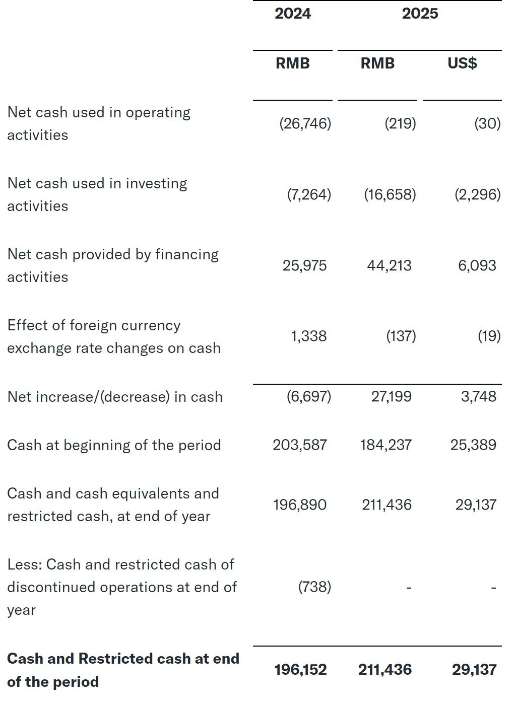 截至2025年3月31日,Tims天好中国持有的现金及现金等价物、限制性现金及定期存款总额为2.114亿元(2910万美元),而截至2024年12月31日为1.842亿元。这一变化主要归因于提取了额外的银行借款,但部分被业务扩张和全国门店网络扩张带来的现金支出所抵消。
