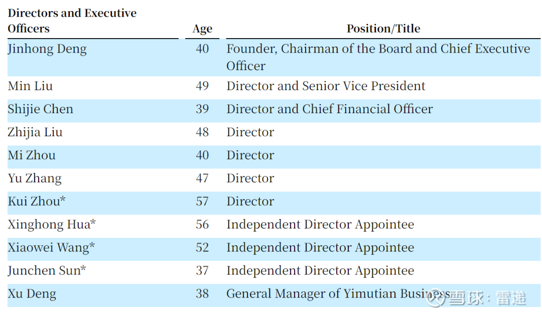 IPO后,邓锦宏持股17.77%,有74.91%股权,高级副总裁Min Liu持股2.62%,管理层共持股17.77%,有74.91%的投票权。