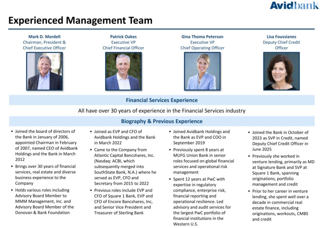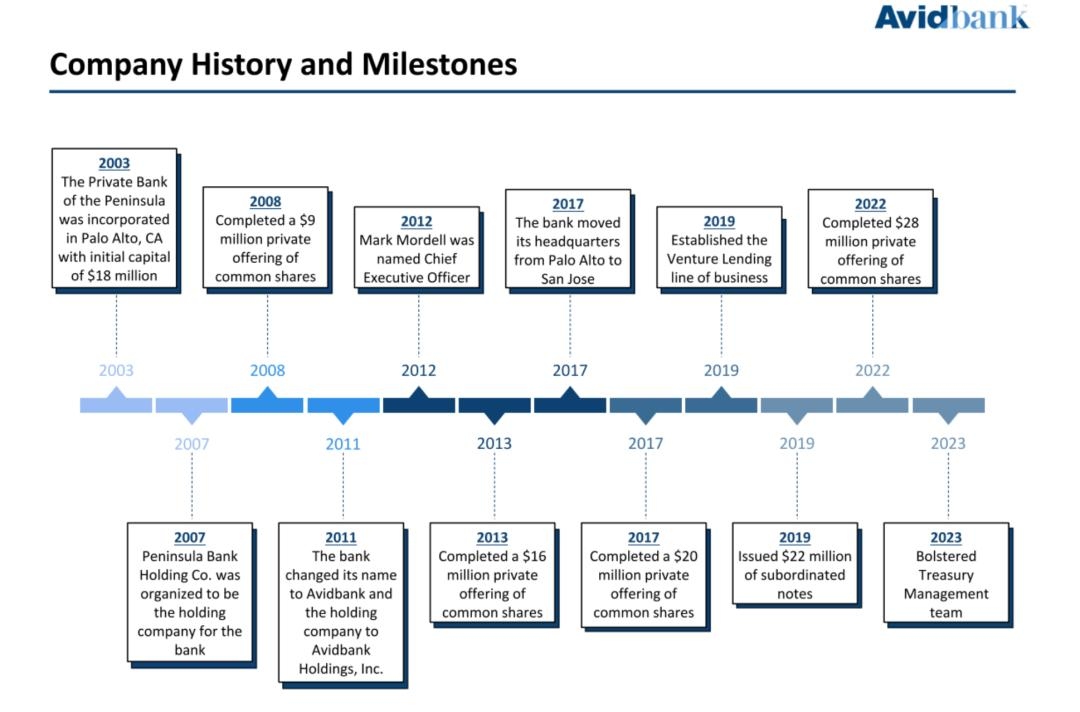 Avidbank成立于2003年,是一家专注于湾区企业银行业务和房地产业务的加州商业银行,目前在OTC Pink 上市。