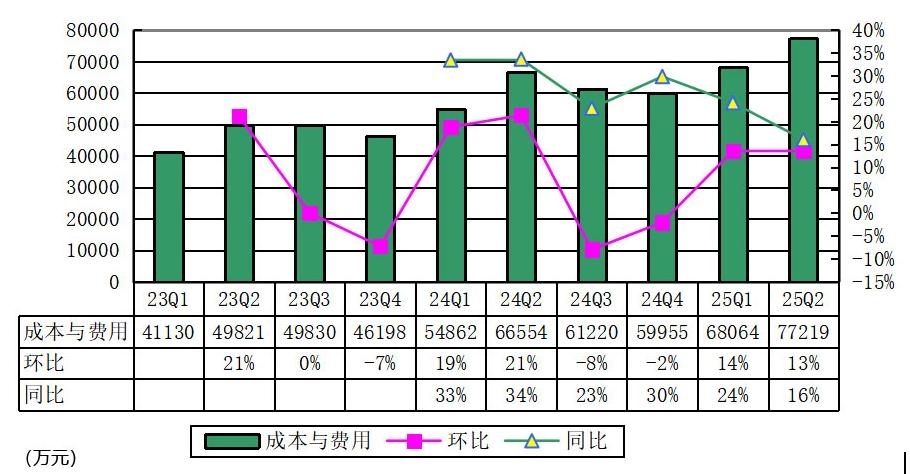 元保2025年第二季度总运营成本及费用为7.722亿元(约1.078亿美元),较2024年同期6.655亿元增长16.0%。