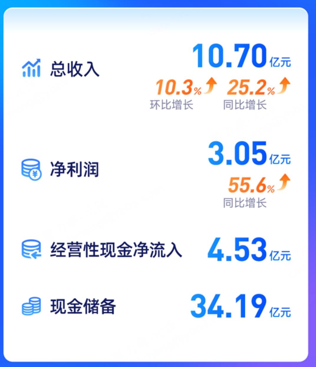 元保2025年第二季度营收为10.7亿元(约1.49亿美元),较上年同期的8.54亿元增长25.2%,较上一季度的9.7亿元增长10%。