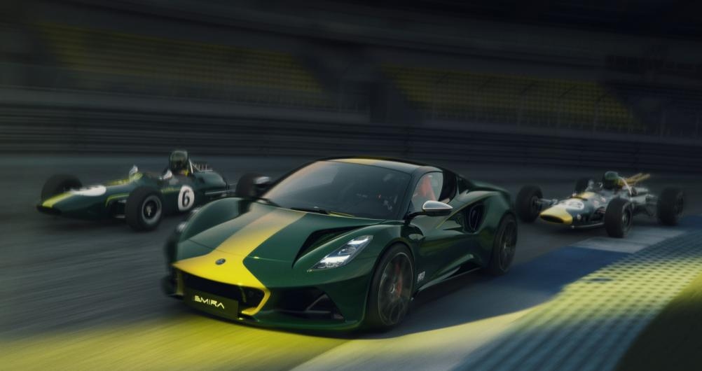 EMIRA Clark Edition基于EMIRA V6打造,车身采用"克拉克赛车绿"(Clark Racing Green)专属涂装,配以黑色车顶、银色后视镜,及从1965年Type 38、Type 33、Type 32B和Type 35赛车上汲取灵感的经典黄色拉花。铝制油箱盖采用带有蓝色阳极氧化中心件,排气尾管采用Type 38 Indy 500冠军赛车的标志性黄色设计,提升外观专属感。车身侧面手工绘制的黄色腰线贯穿车体轮廓,车门处饰有源自克拉克赛车专属徽章。