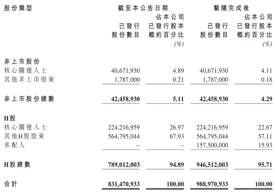 配售事项项下1.58亿股配售股份占截至本公告日期已发行H股数目的约19.96%及已发行股份数目的约18.94%,及经配发及发行配售股份扩大后的已发行H股数目的约16.64%及已发行股份数目的约15.93%。