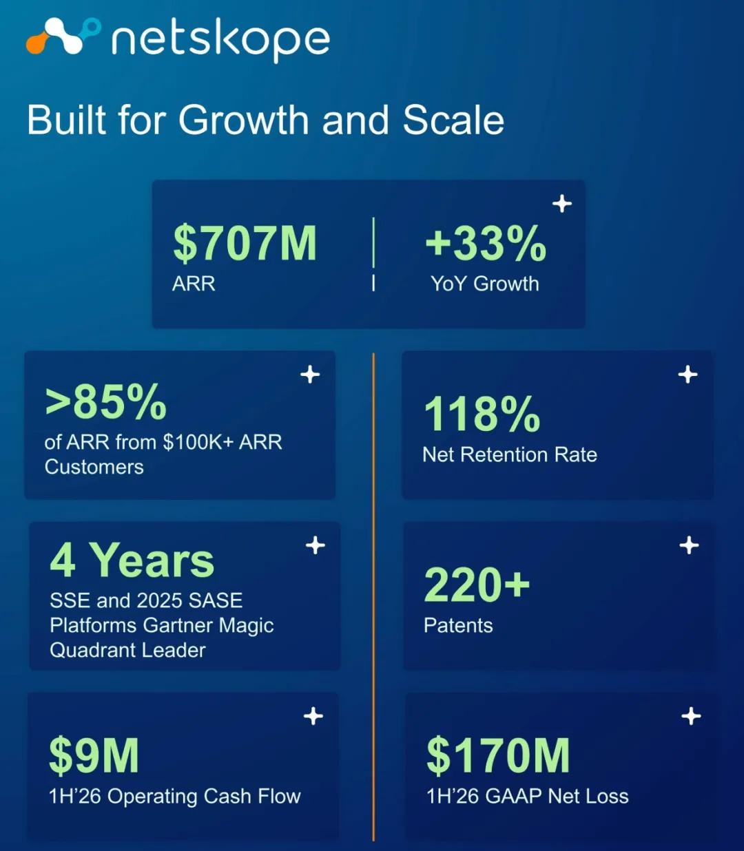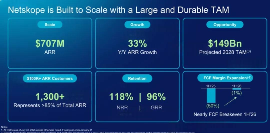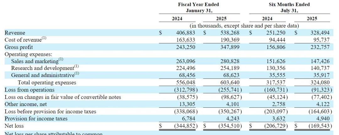 截至2025年7月31日,Netskope的半年营收为3.28亿美元,较上年同期的2.51亿美元增长30.7%;净亏损为1.7亿美元,上年同期的扣非后净亏损为2.07亿美元。