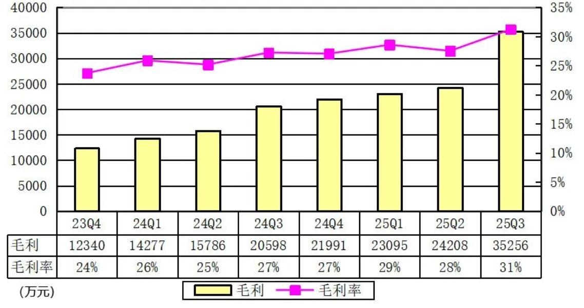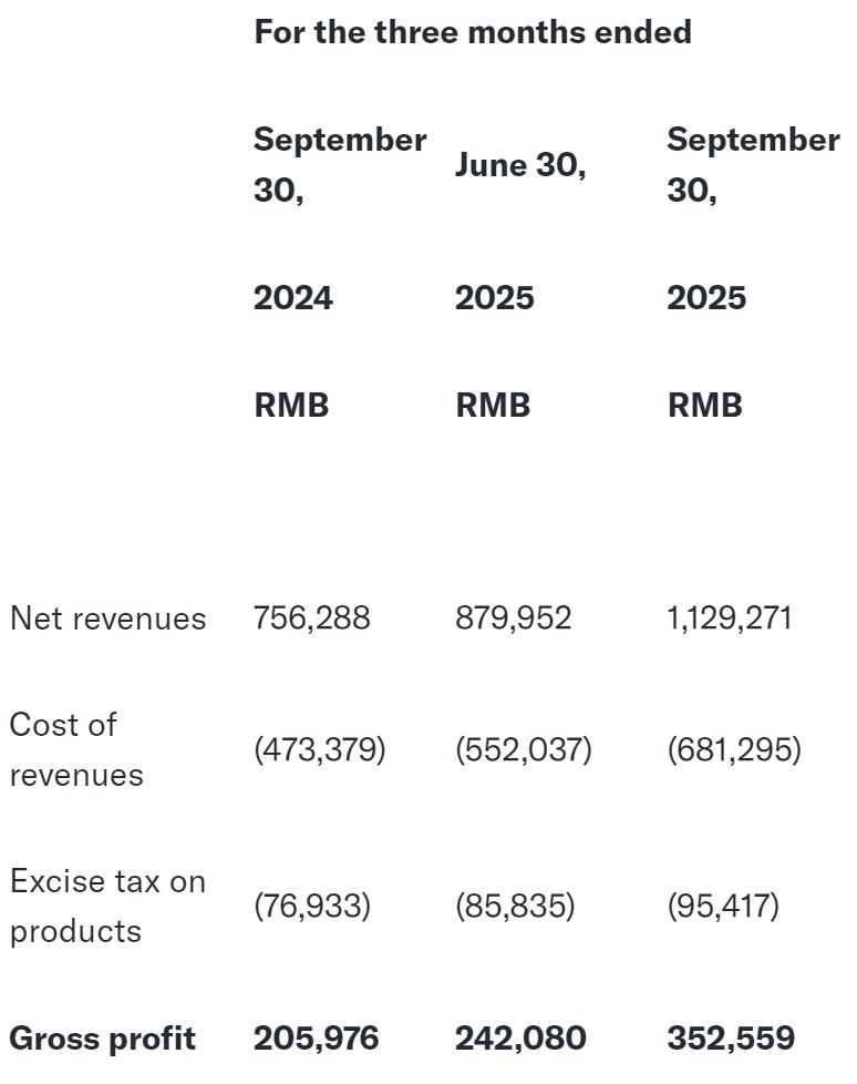 雾芯科技2025年第三季度毛利为3.53亿元(约4950万美元),较上年同期的2.06亿元增长71%;雾芯科技2025年第三季度毛利率为31%。