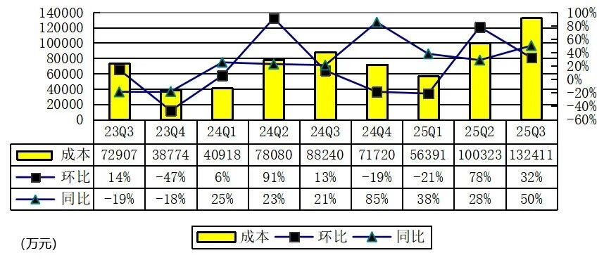 小牛电动2025年第三季度成本为13.241亿元,同比增长50.1%,低于收入增速。平均单车成本(营业成本除以同期整车销量)为2,842元,较上年同期的2,824元略有增长,主要由于海外市场的成本增加,但被中国市场的成本降低所部分抵消。