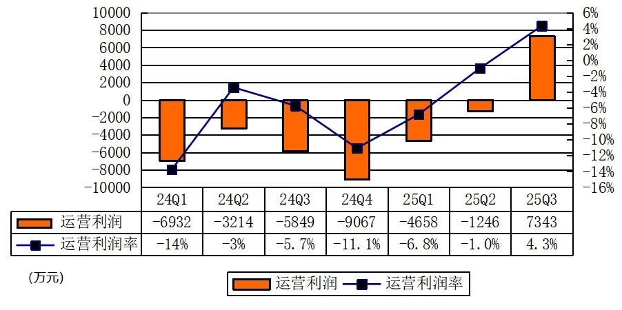 小牛电动2025年第三季度运营利润为7343万元,运营利润率为4.3%。
