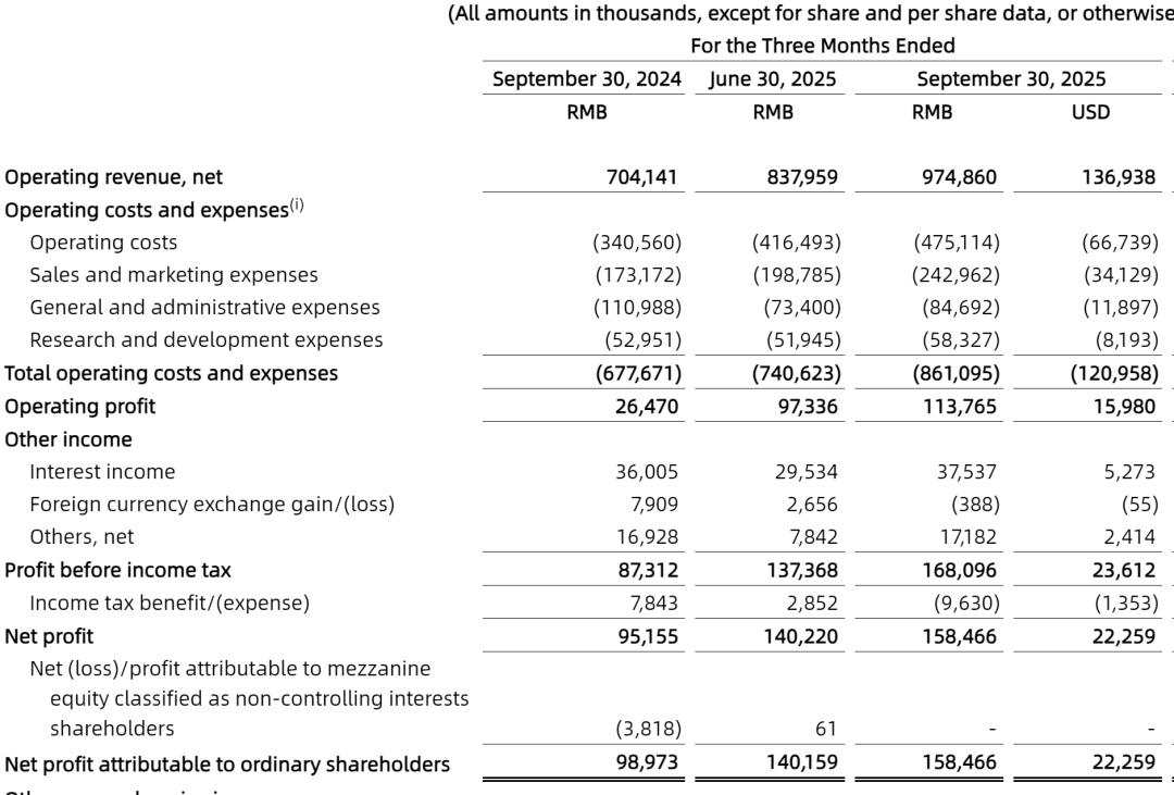 水滴公司2025年第三季度净利为1.58亿元(约2230万美元),较上年同期的9900万元增长20%。