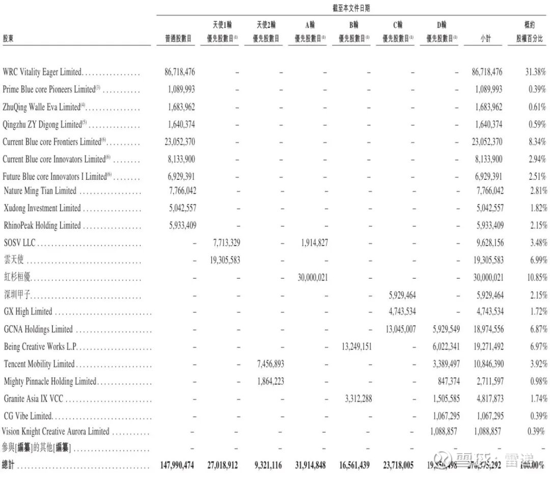 红杉桓优持股为10.85%,深圳甲子持股为2.15%,GX High Limited持股为1.72%,GCNA Holdings持股为6.87%,Being Creative Works L.P持股为6.97%,Tencent Mobility持股为3.92%,Mighty Pinnacle持股为0.98%,Granite Asia IX VCC持股为1.74%,CG Vibe持股为0.39%,Vision Knight Creative Aurora持股为0.39%。