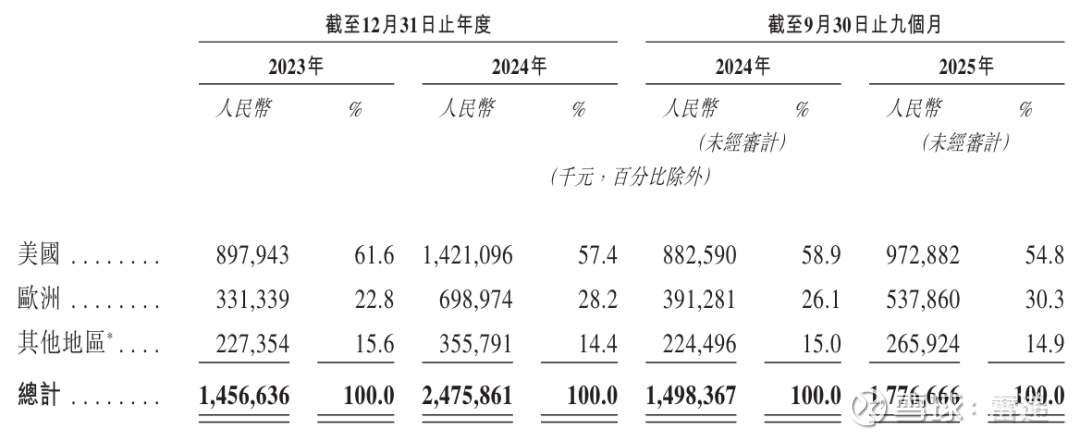 美国是xTool最大的市场。xTool在2025年前9个月来自美国的收入为9.73亿,占比为54.8%;来自欧洲的收入为5.38亿元,占比为30.3%;来自其他区域的收入为2.66亿,占比为14.9%。
