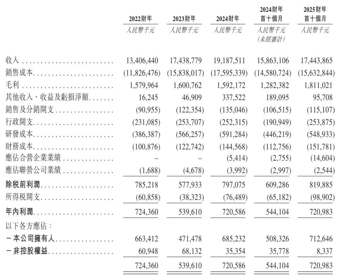 国恩科技2025年前10个月营收为174.4亿元,毛利为18.1亿元,年内利润为7.21亿元。