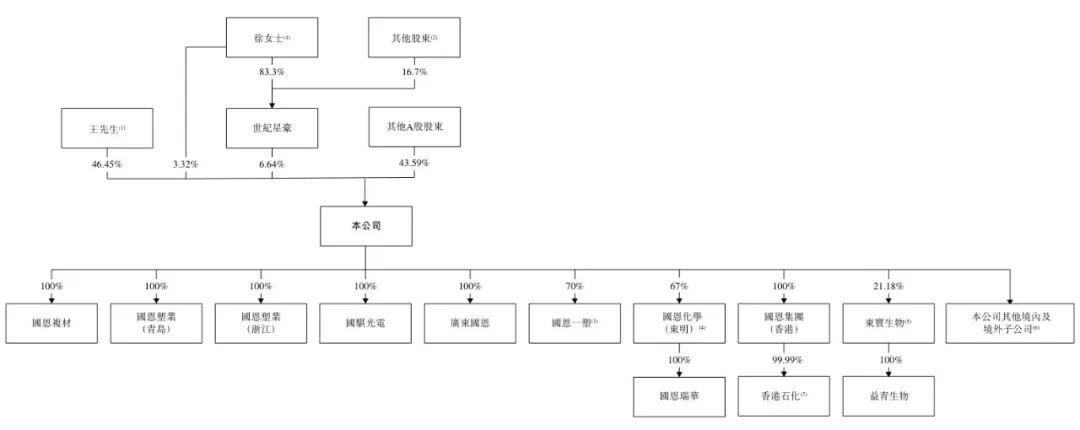 王爱国亦担任若干子公司的董事,如东宝生物、益青生物及国恩一塑董事长;及国恩复材、国骐光电、广东国恩及江苏国恒新材料科技有限公司、日照国恩化学有限公司等多家子公司的执行董事。王爱国负责监督集团的整体业务发展、策略规划及营运管理。