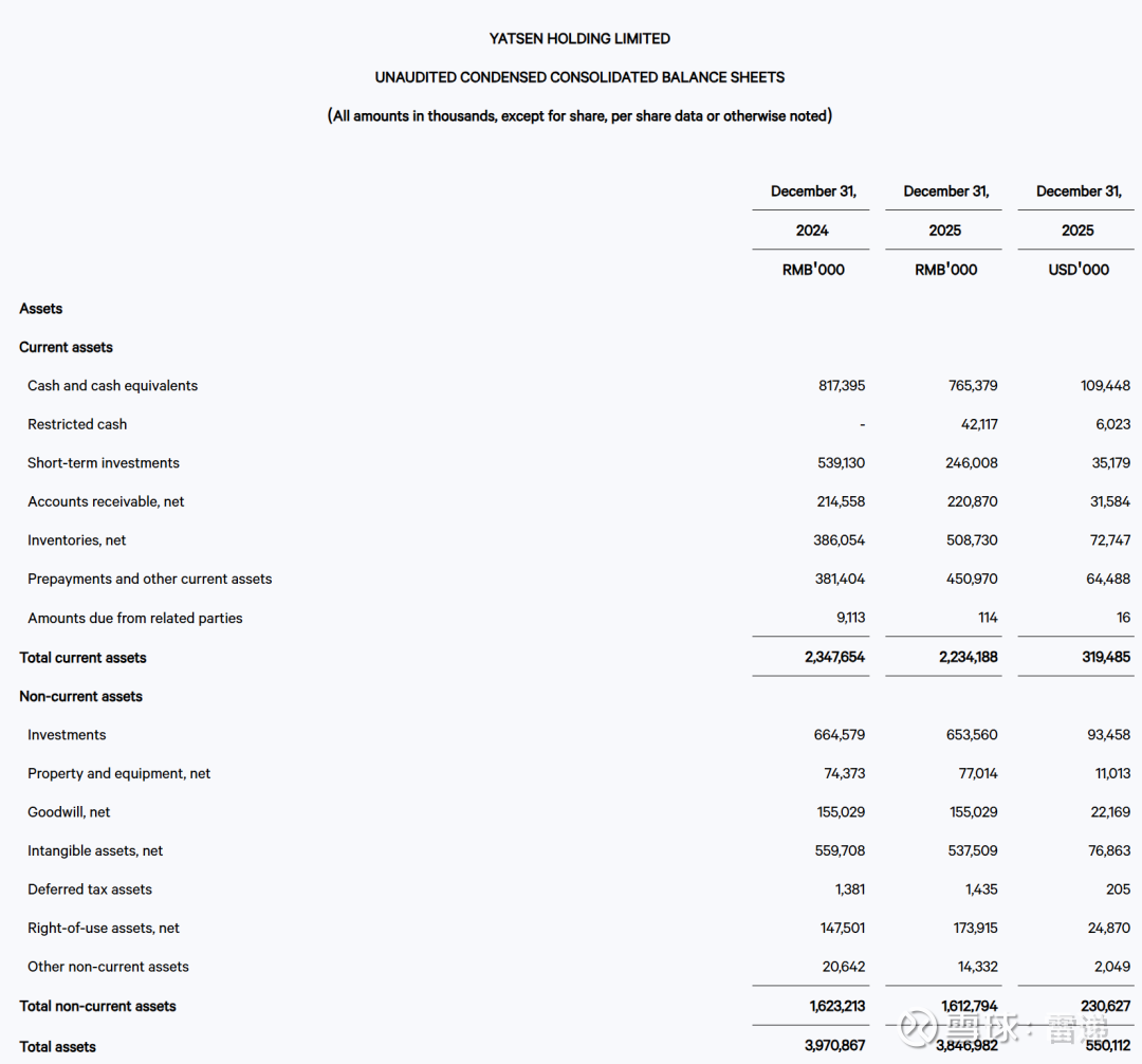 截至2025年12月31日,逸仙电商总资产38.47亿元(约8.5亿美元),其中,现有流动资产22.34亿,非流动资产为16.12亿元(约2.31亿美元)。
