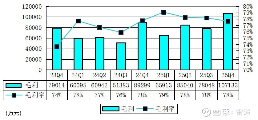 逸仙电商2025年第四季度毛利为10.7亿元,毛利率为78%。